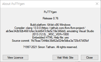 하지만, 여기서 이상한 문제가 생겼다. 포스팅을 하기 위해 다른 PC에서 동일하게 해 보았는데 문제가 발생하지 않는다. 버전 문제인가 하고 PuTTYgen의 버전을 보았는데 문제의 PC와 동일한 0.76 버전이다.