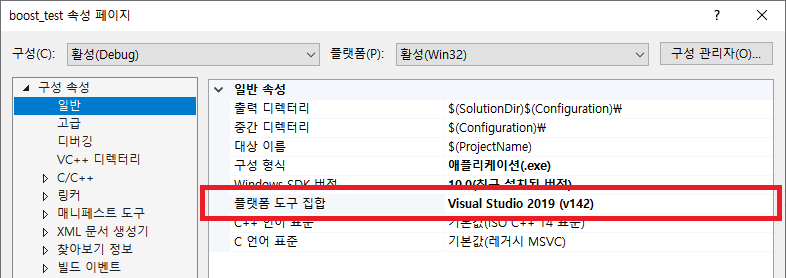 toolset 부분은 아래와 같이 원하는 버전에 맞게!!