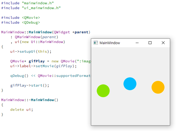 아래와 같이 QMovie를 사용하여 gif 재생을 시켜보자.
