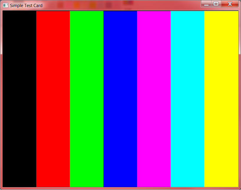 Colour bars/Display You are encouraged to solve this task according to the task description, using any language you may know. Task Display a series of vertical color bars across the width of the display. The color bars should either use: the system pale