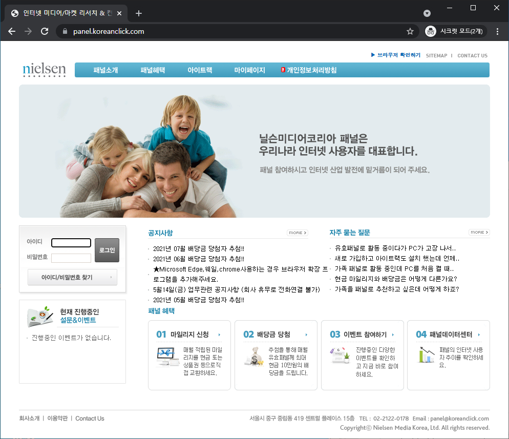 주소는 https://panel.koreanclick.com 이고 아래와 같은 사이트다. 보이는 것처럼 예쁜 페이지는 아니다.