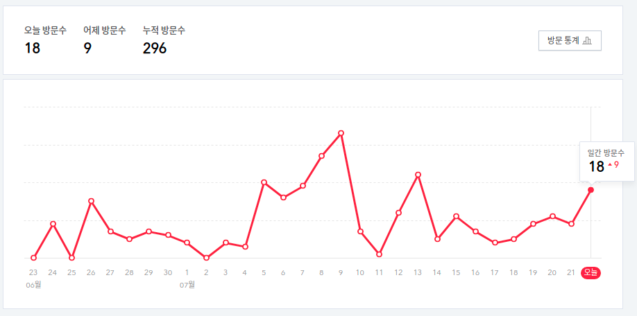 흠. 아래와 같이 방문수는 형편없다. 내가 게시물 작성하거라 들락날락해서 그런 것을 포함해야 하니. 사실상 거의 방문이 없었다고 봐야 한다.
